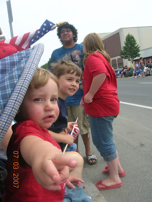 This year the weather was perfect - not too hot, not too cold. And the rain held off until the parade was over. Very courteous, I'd say. It was such fun watching all the children but especially E-boy & Bugs. They were completely into it all. Bugs would get SO excited! It was contagious!