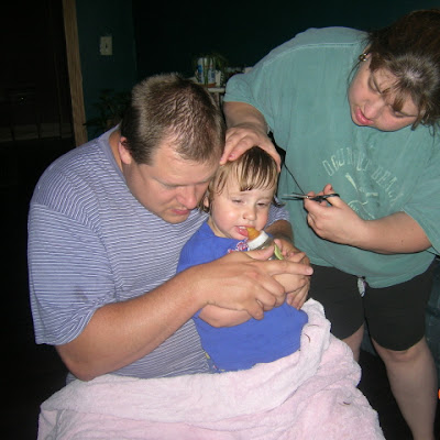 It's that time again. My baby was barely peeking through his curly locks and that meant they needed to be trimmed. I still can't bear to cut all his curls off. Some think it's time but I'm waiting. He's still young enough and he sports his curls in a boyish manner. *grin* Don't worry, I did the same thing with his older brother and he is still all boy. Funny how my boys both inherited the curls but my girls got their mother's straight-as-a-pin hair. I love his curls and will be sad when they have to go.
