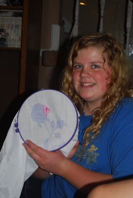 All that sewing inspired Sweet Pea to get out her cross-stitch.
